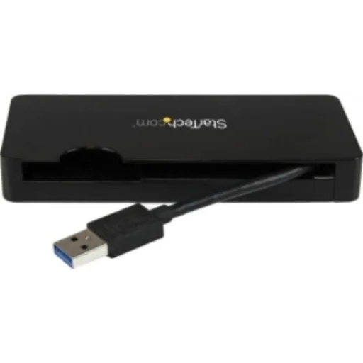 Solución versátil para la conexión de una pantalla adicional a su ordenador portátil, este replicador de puertos de viaje ofrece una salida de vídeo HDMI con audio, o una salida de vídeo VGA: dos interfaces muy conocidas para la conexión de un televisor, proyector o monitor como segunda pantalla, compatible con resoluciones de hasta 2048×1152 (QWXGA). Al aprovechar la interfaz USB 3.0 para el alto ancho de banda (5Gbps) y obtener una salida de vídeo flexible, un puerto de concentrador USB 3.0, así como Ethernet Gigabit, es posible configurar rápidamente una estación de trabajo multifunción al vuelo, sin tener que sacrificar uno de los puertos USB de su ordenador portátil.